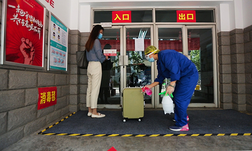 6日上午,在工作人员的引导下,同学们持身份证、学生证等有效证件由学生返校专用通道入校,经过工作人员对其随身行李进行消毒、检测体温、人脸识别认证等流程后,学生进入学院报到处,领取学生校园防疫须知、校园健康包,最后达到各自宿舍。整个流程有条不紊,井然有序。