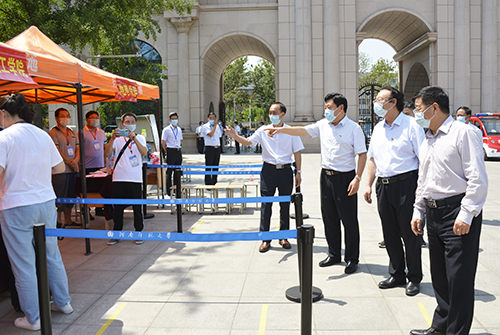 当天上午,校领导一行先后来到行李消毒区、体温测量区、身份核验区和学院报到区视察指导工作,就返校报道过程中的重点环节、风险点和防控点提出了指导意见。在学生报到区,校疫情防控指挥部指挥长赵国祥、常俊标热情欢迎同学们“回家”,亲切询问报到学生从哪里返校,如何返校,返校路途如何注意个人防护等情况,并叮嘱同学们返校后严格遵守学校疫情防控的各项规定,在做好自身防护的前提下,安心投入学习和研究工作,不辜负领导、老师的殷切期望。赵国祥、常俊标详细了解各项工作流程,对坚守在岗位的工作人员表示慰问,要求各部门要严格落实返学复学各项工作要求,扎实做好防控细节,筑牢校园安全防线,确保学生返校报到安全有序。