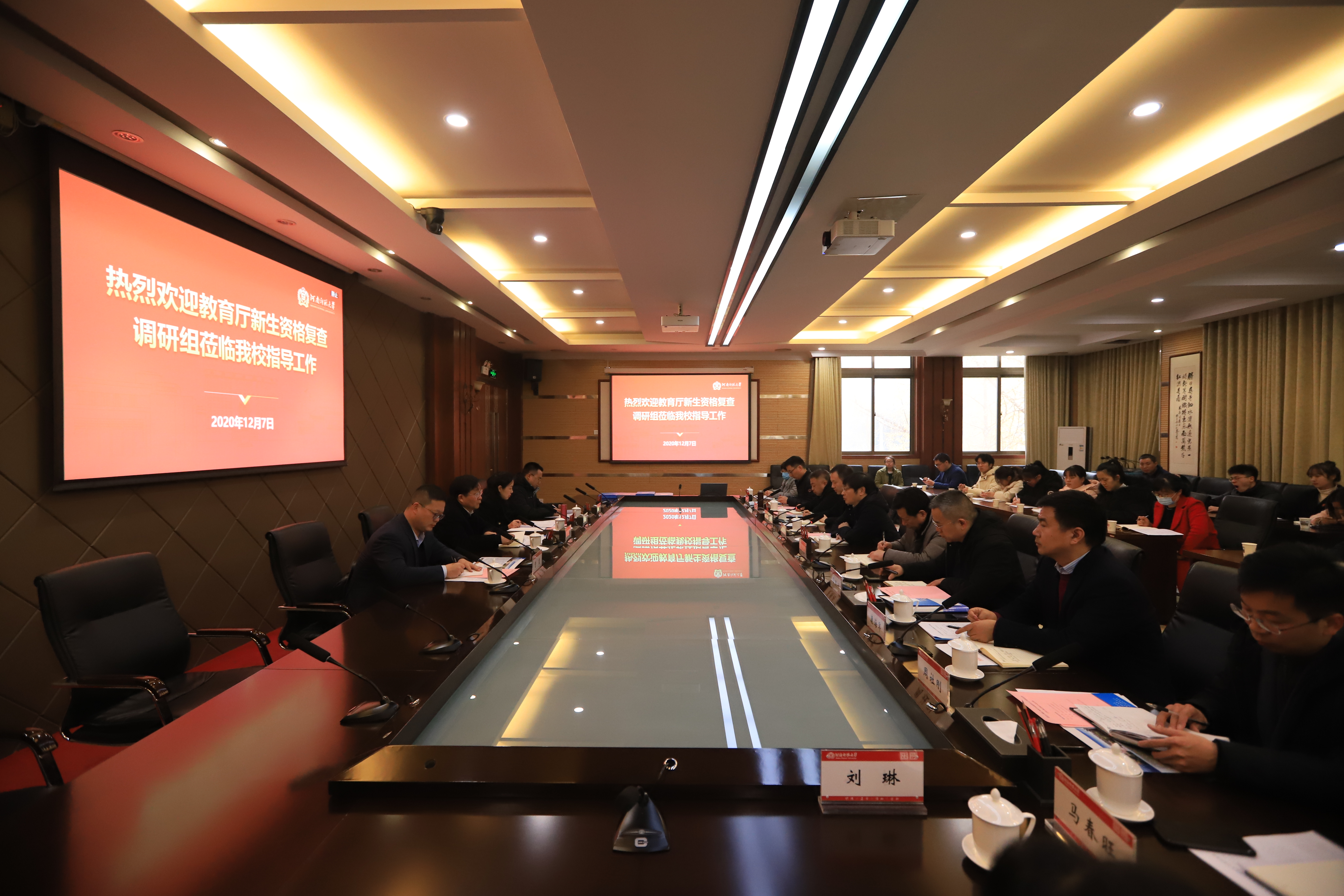 宋文献介绍了此次调研工作的具体安排,传达了教育厅新生入学资格复查工作部署会议精神及主要内容,进一步强调了新生入学资格复查工作的重要性。在听取汇报后,宋文献对我校新生入学资格复查工作给予了高度评价。他指出,我校的新生入学资格复查工作政治站位高、制度建设完备、目标任务明确、程序规范有序、监督检查到位,并且在新生资格复查过程中善于研究问题、发现问题,提出的意见建议非常具有建设性,工作做法值得推广。