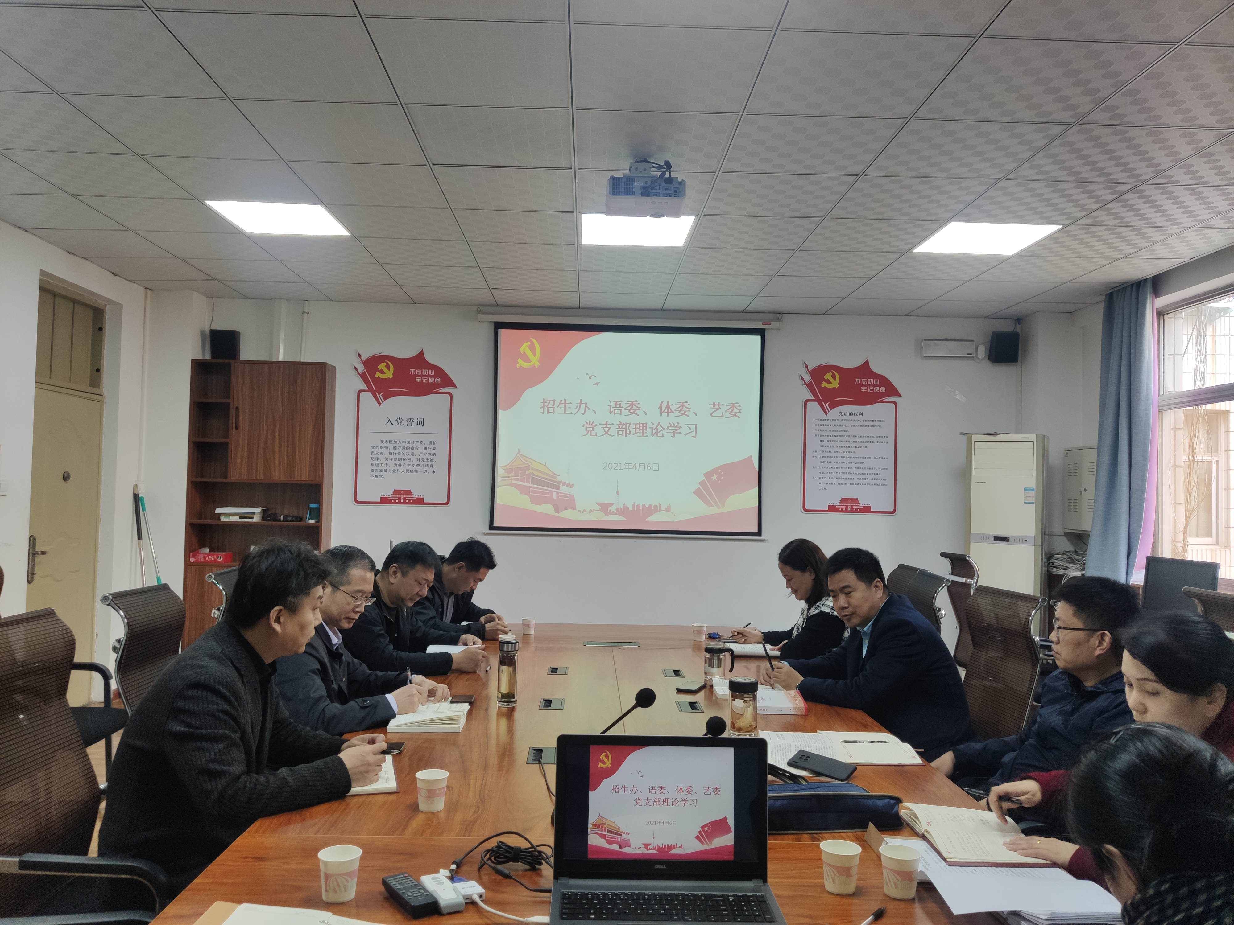 4月6日下午,招办、语委、体委、艺委党支部开展理论学习活动,直属单位党委书记任永利、支部全体党员一起参加学习。会议由支部书记康海军主持。