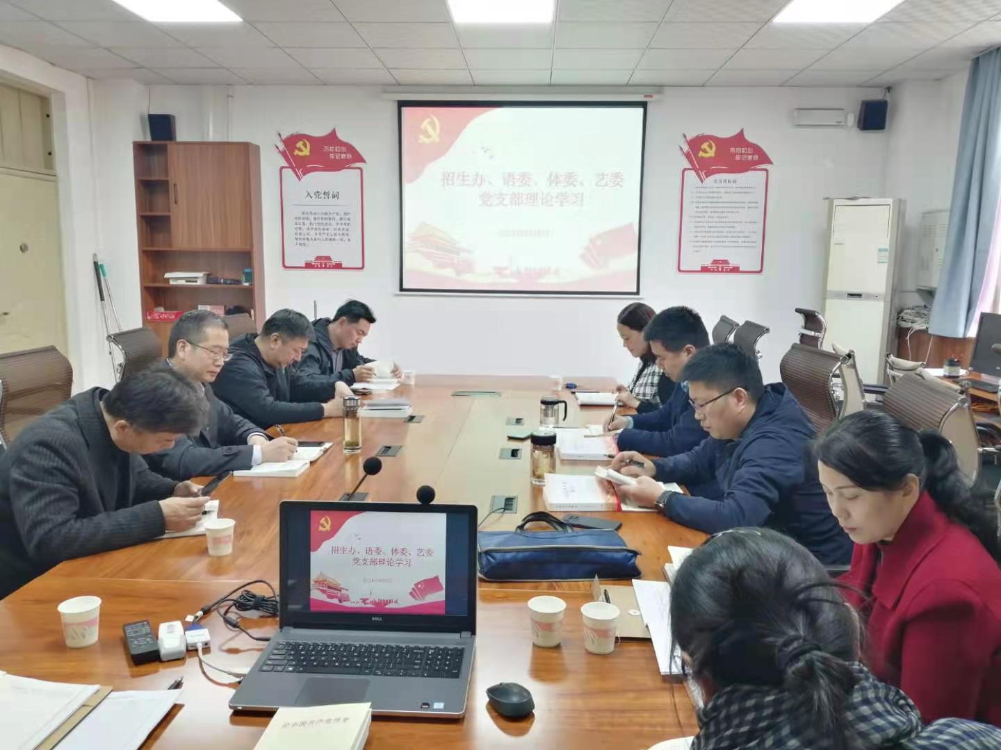 4月6日下午,招生办语委体委艺委党支部在文渊楼331A会议室开展党史学习教育活动。支部全体党员参加学习,会议由支部书记康海军主持。直属单位党委书记任永利全程参与。