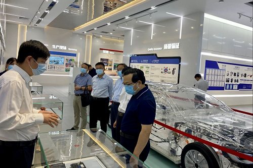 在公司相关负责人的陪同下,学院一行还实地参观了企业生产一线、实验中心、产品陈列展柜等。