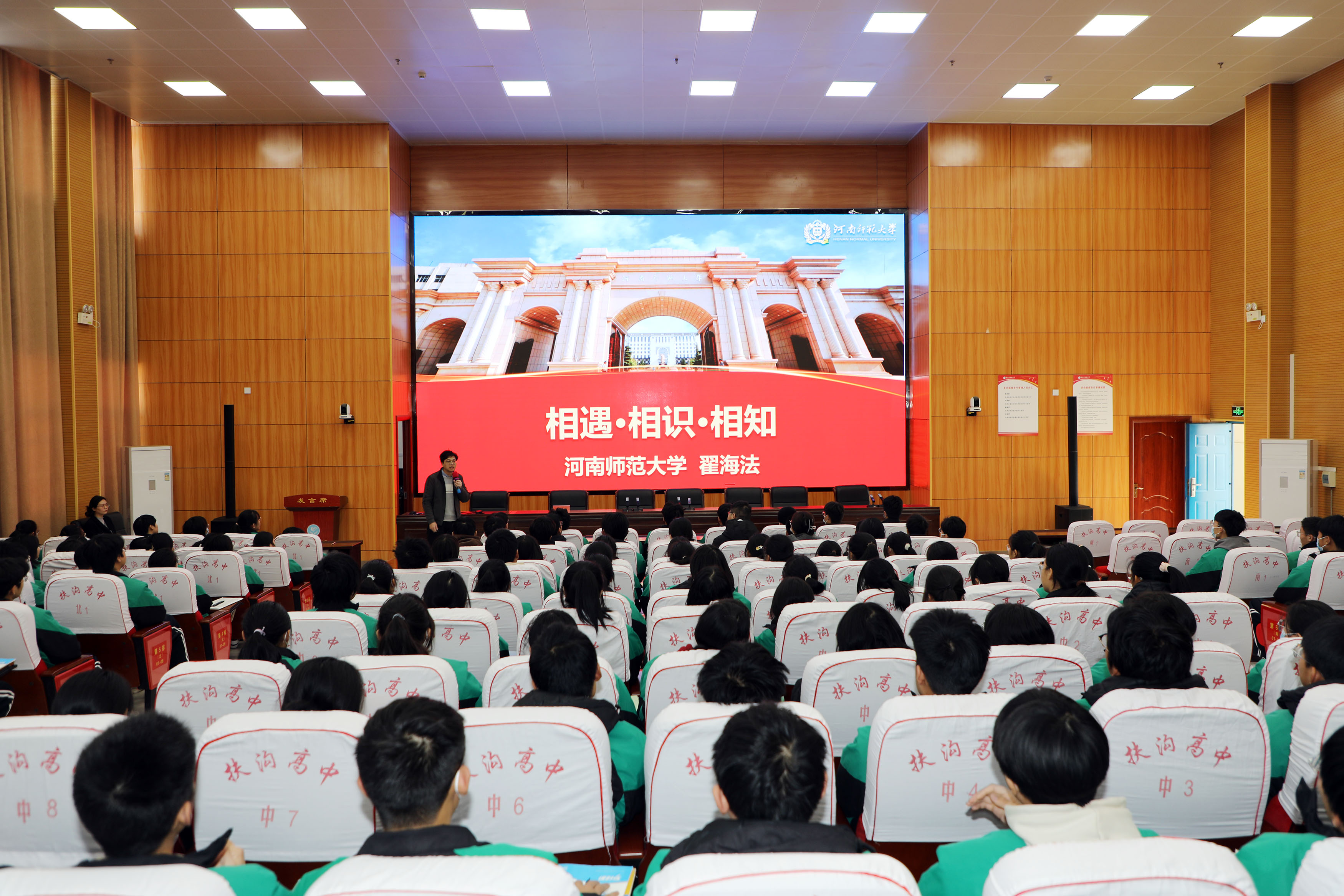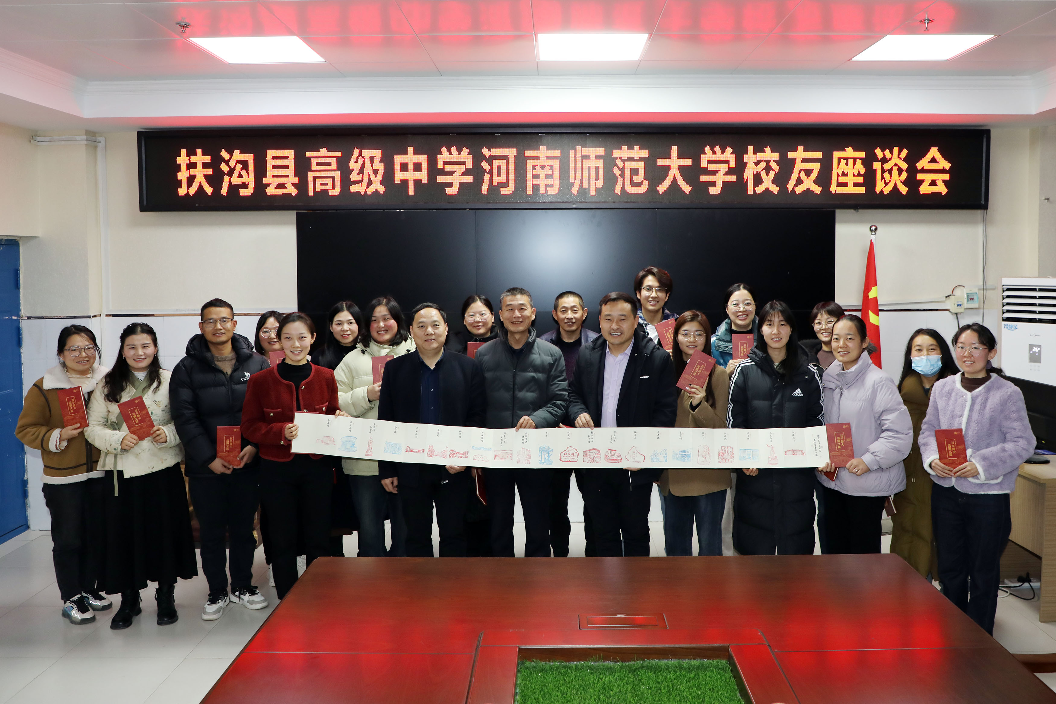 发放仪式后,董长雨、李文胜与伟德官网下载苹果版在扶沟县高级中学工作毕业生进行了座谈交流,扶沟高级中学目前400余名教职员工中有107位曾毕业于伟德官网下载苹果版,这些校友代表在座谈会上不但各自回顾了曾在师大的学习生活,而且对师大办学百年表示祝贺,并为师大的发展建言献策。座谈会上,董长雨、李文胜为校友发放了师大百年校庆文创产品,同时鼓励大家要把师大优良的学风和教风传承传扬下去,努力在基层岗位上真扎实干、建功立业,同时也要经常回“家”看看。在报告厅,材料科学与工程学院副教授翟海法以《相遇、相识、相知》为题为学生进行了材料方面的专业科普讲座,青年教师姜璐璐博士作为扶沟县高级中学2009届毕业生为学生分享了其高中及以后的求学经历,鼓励勉励大家树立远大目标,勇于求知进取。他们与学生进行了积极活跃交流互动,并对学生的当前学习、未来发展提出了意见建议。