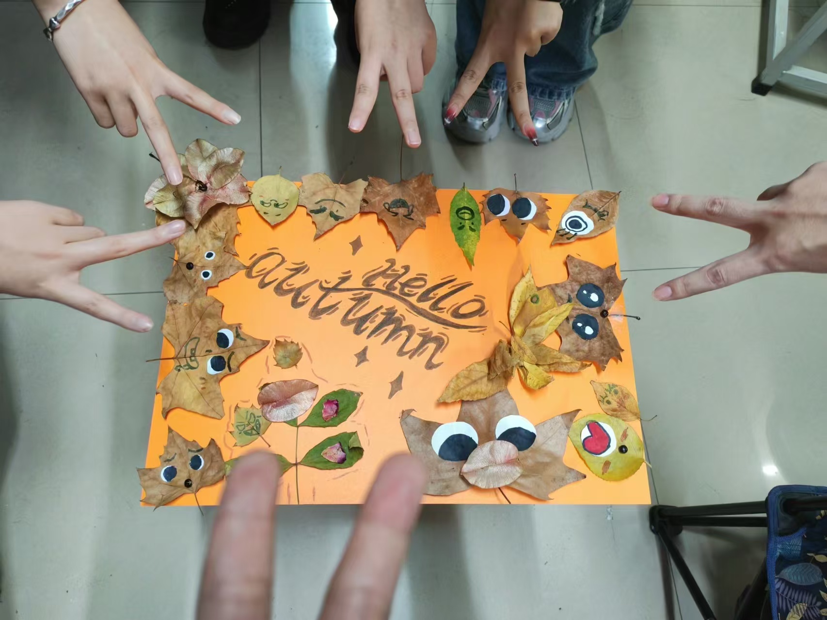活动期间,同学们以寝室为单位,分工明确,默契配合,有条不紊地展开落叶“搜索行动”,采集校园里的枯枝落叶和落花残骸。同学们充分发挥自己的想象力和创造力,用落叶作为天然的“颜料”和“画布”,通过剪切、拼接、涂色等方式绘制出一幅幅别具一格的作品其中,338寝室的作品“秋叶斑斓·自然之歌”金黄的银杏叶化作阳光斑驳的地面,火红的枫叶勾勒出树木挺拔的身姿,翠绿的梧桐叶点缀其间,精心拼接成一幅绚烂的秋日森林图景。216宿舍寝室的作品“叶绘四季·时光流转”则巧妙地运用了四季不同特色的树叶,巧妙拼贴出一年四季的更迭变换每一片树叶都承载着时间的记忆,不仅展现了四季变换的奇妙与美丽,更激励人们珍惜时光,把握每一个当下的美好。