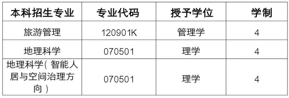 ◆设有旅游管理(国家一流专业)、酒店管理、人文地理与城乡规划、地理科学4个本科专业