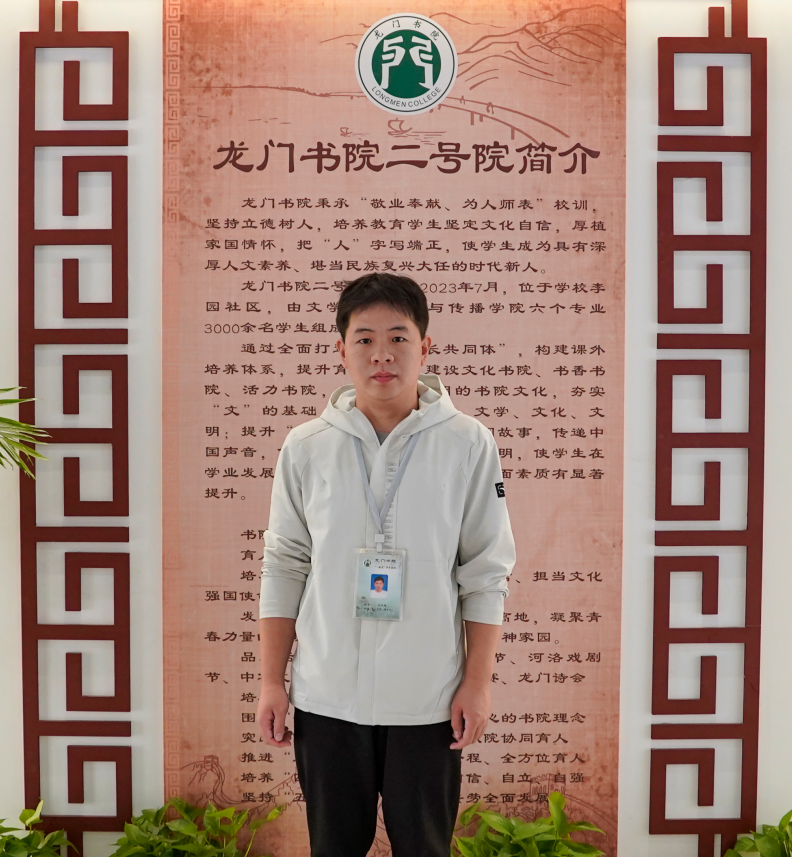 国际教育学院2019届毕业生,在校期间曾获国家奖学金、省“三好学生”、省“优秀学生干部”、省“优秀毕业生”等荣誉。2022年9月进入洛阳师范学院新闻与传播学院从事辅导员工作,现任龙门书院二号院学生发展服务中心副主任。曾获河南省2022年“越团结豫有力”主题教育实践活动优秀指导教师,洛阳师范学院2022年度优秀统战工作者,2023年“挑战杯”先进工作者,2022年度学雷锋志愿服务优秀教工志愿者,2023年大学生科技文化艺术节先进工作者等荣誉。