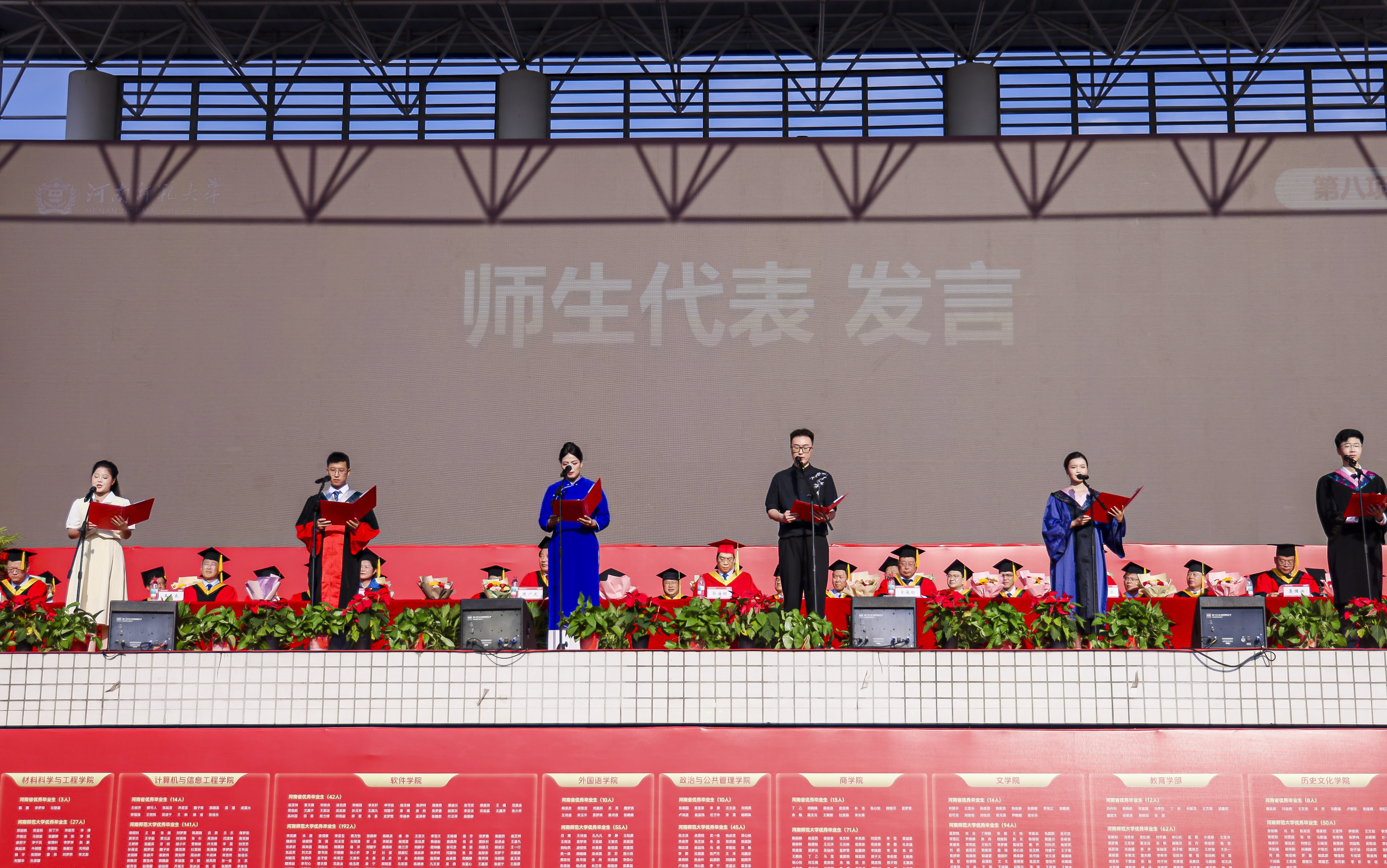 青葱岁月逐梦行,意气风发启新程。本科毕业生代表张佳祺,硕士毕业生代表董星池,博士毕业生代表刘乙霖以集体朗诵的形式表达了对老师们的诚挚谢意,对母校的深深眷恋。教师代表高书燕教授,辅导员代表宋旺旺老师,在校生代表叶晓彦共同祝愿全体毕业生跃入人海各有光,不断砥砺奋进,争做时代新人。