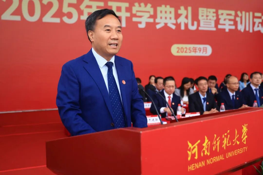 9月8日,我校2025级新生开学典礼在主校区西校区塑胶运动场隆重举行。郑州市第一中学校长牛建勋以“生源中学校长”与“师大学子”的双重身份参加,并作为优秀生源中学代表发言。全文如下: