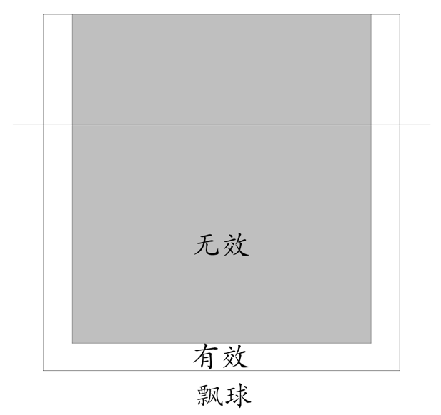 C.球打入无效区、失误或落点合格但力量明显不足。(0分)