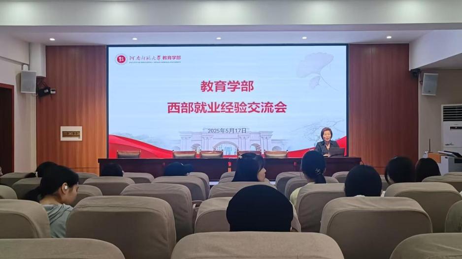 为进一步落实学校“就业西向计划”工作部署,5月17日下午,教育学部在田家炳教育书院819会议室举办西部就业经验交流会。活动特邀现就职于喀什大学的教育学部2024届研究生李飒担任主讲,学部党委副书记康淑霞、毕业班辅导员及80余名有西部就业意向的本科生、硕士生参加。会议由研究生辅导员陈宏志主持。