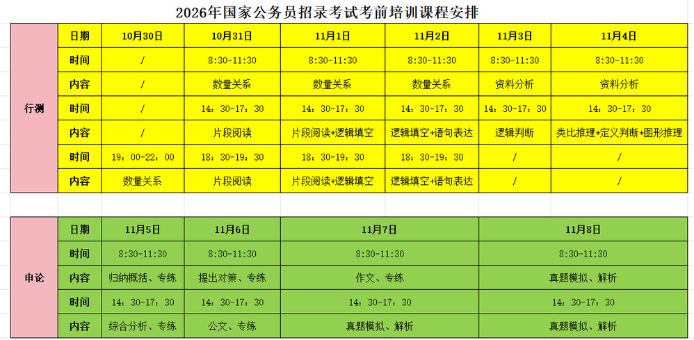 为助力我校毕业生高效备战国家、八省市(京、津、沪、粤、浙、苏、鲁、川)、选调等公务员招录考试,进一步强化解题能力、精进答题技巧、提高笔试成绩,提升毕业生公职岗位考取成功率,我校特举办为期10天的考前专项培训,具体安排如下: