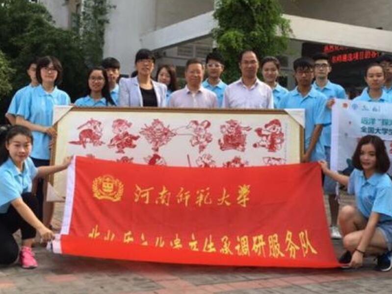 文学院非物质文化遗产传承调研服务团今年暑期在沁阳市王召乡冯翊村,以“1+1+1”模式即“实地调研”、“文化支教”、“汇报演出”相结合,深入实地开展实践活动。实践中,全体队员学习并传承非物质文化遗产“两家闲”戏剧的精髓,结合文学院自身专业特色举办别开生面的文艺晚会,在当地开展艺术支教。实地调研中,团队分为“艺人小传编辑队”、“表演记录传播队”、“戏曲剧本整理队”和“剧团发展历史队”四个小分队,帮助当地艺人整理剧本,推广“两家闲”戏剧,促进现代文明与当地传统文化的创新性碰撞。良好的实践效果也受到了媒体的广泛关注,《中国青年报》、中青在线、中国网、《焦作日报》等对实践活动进行了专题报道。实践归来后,团队以社会实践报告、视频、戏曲展演等形式进行成果展示,得到校内外广泛好评。良好的社会效益和丰硕的实践成果,有效推动了我校实践育人工作开展,进一步提升了学校的知名度和美誉度。