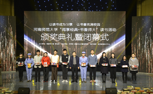 感悟时代经典,共筑书香师大。日前,由党委学工部、学生处主办,文学院、政治与公共管理学院承办,现代教育技术中心协办的“阅享经典•书香师大”读书活动颁奖典礼暨闭幕式在帕瓦罗蒂音乐厅举行。中国著名作家、中国人民大学文学院教授阎连科,校党委书记郑邦山,副校长李雪山,党委办公室、组织部、学工部、就业创业指导服务中心、文学院、政治与公共管理学院等相关部门负责人出席颁奖典礼并为获奖单位和选手颁奖。各学院副书记、辅导员及五百余名学生代表共同参加了颁奖典礼。