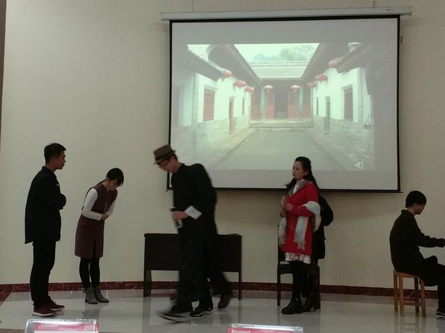 本场比赛共分为七组,分别演绎了《三块钱国币》、《黄金时代》、《刘胡兰》、《祝福》等经典著作。比赛过程中,参赛者融入时代背景,体会人物情感,以灵活的方式进行改编,高度还原了经典书目内容。其中,由15级戏剧影视文学专业的同学带来的《父亲的战场》,运用戏剧思维成功创新了时空转换手法,通过不同时空人物的对话,将曾经英勇卫国的战士形象刻画的生动传神,其为国为民的大无畏精神让人动容。此外,刘胡兰对革命事业的坚定执着,萧红在战乱年代的勇敢无畏,孤独凄惨的祥林嫂以及处于新旧社会交替善良朴实,却又迂腐顽固的孔乙己,同样给观众留下了深刻印象。伴随着经久不衰的名人著作的现代演绎,在场师生无不感受着时代的变迁、岁月的流逝。参赛者也在表演过程中体验不同人物的复杂心理,感受着百味人生。赛后,陈文勇、陈琛两位老师针对每组表演做了精彩的点评,号召学生要多读经典,揣摩书中人物心理,塑造人物时要拿捏准确,进而带给观众美的享受。