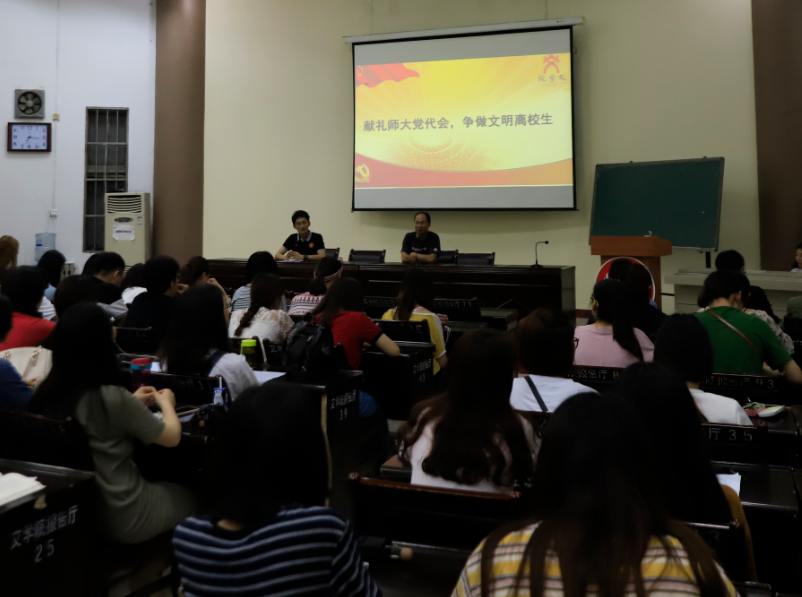 5月21日,文学院“乘风万里看山河——离歌回荡,初心不忘”2018届毕业生党员座谈会在崇文楼报告厅举行。文学院相关负责人、辅导老师、2018届全体毕业生党员及党员工作站全体成员共百余人一起参加了座谈。