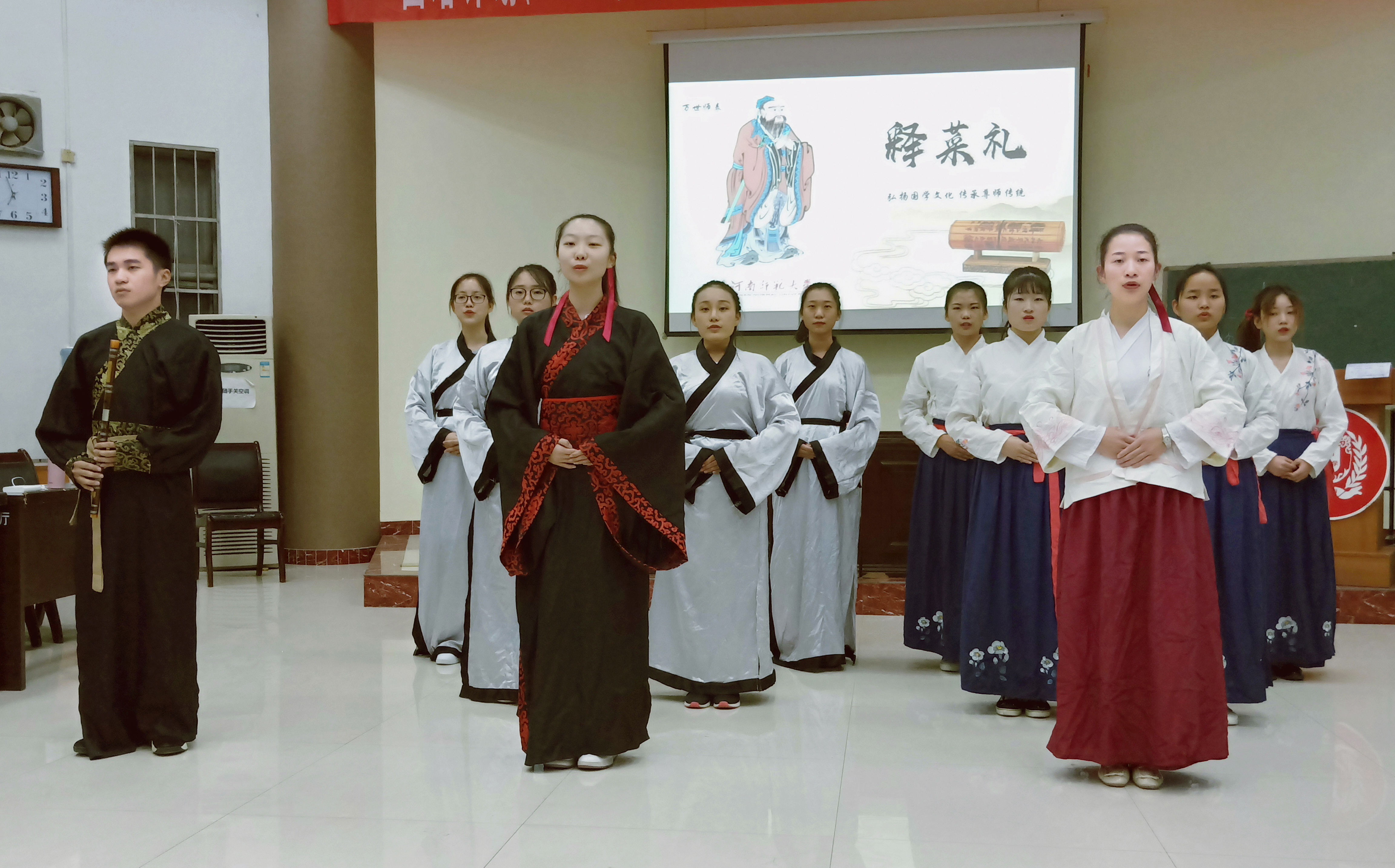 为弘扬国学文化,传承尊师传统,9月24日晚由文学院团委主办、文学院学生社团联合会承办的释菜礼活动在文学院报告厅举行,百余名学生参加了此次活动。