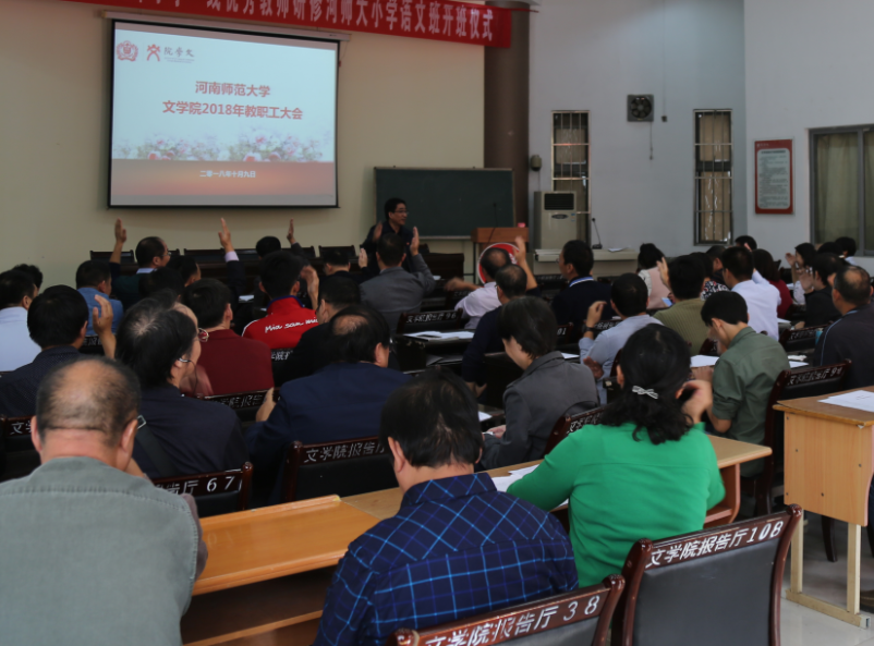 10月9日下午,文学院在学院报告厅召开了2018年教职工大会。学院相关负责人及全院教职工参加了此次会议。会议由学院党委书记王俊杰主持。