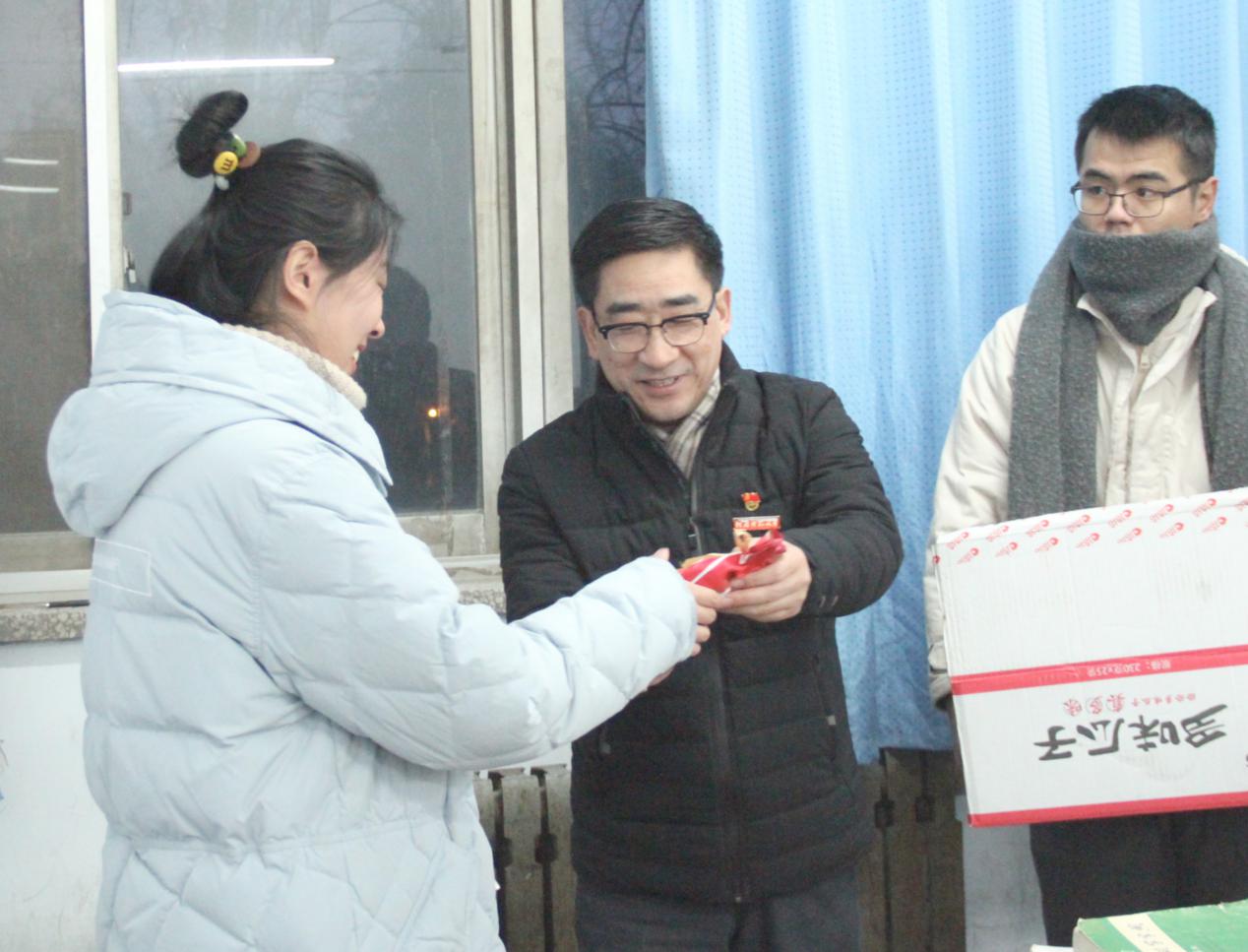 文学院党委书记王俊杰、副书记高飞来到考研自习室将装有暖宝宝、水笔、柑橘等礼物的特制锦鲤福袋分发给备考学生,仔细询问考生复习进度及身体状况,嘱咐学生关注身体,注意保暖,劳逸结合;同时,也要做好考前准备,拿出必胜的决心和勇气,坚信幸福是奋斗出来的,撸起袖子加油干,朝着更高的平台迈进。