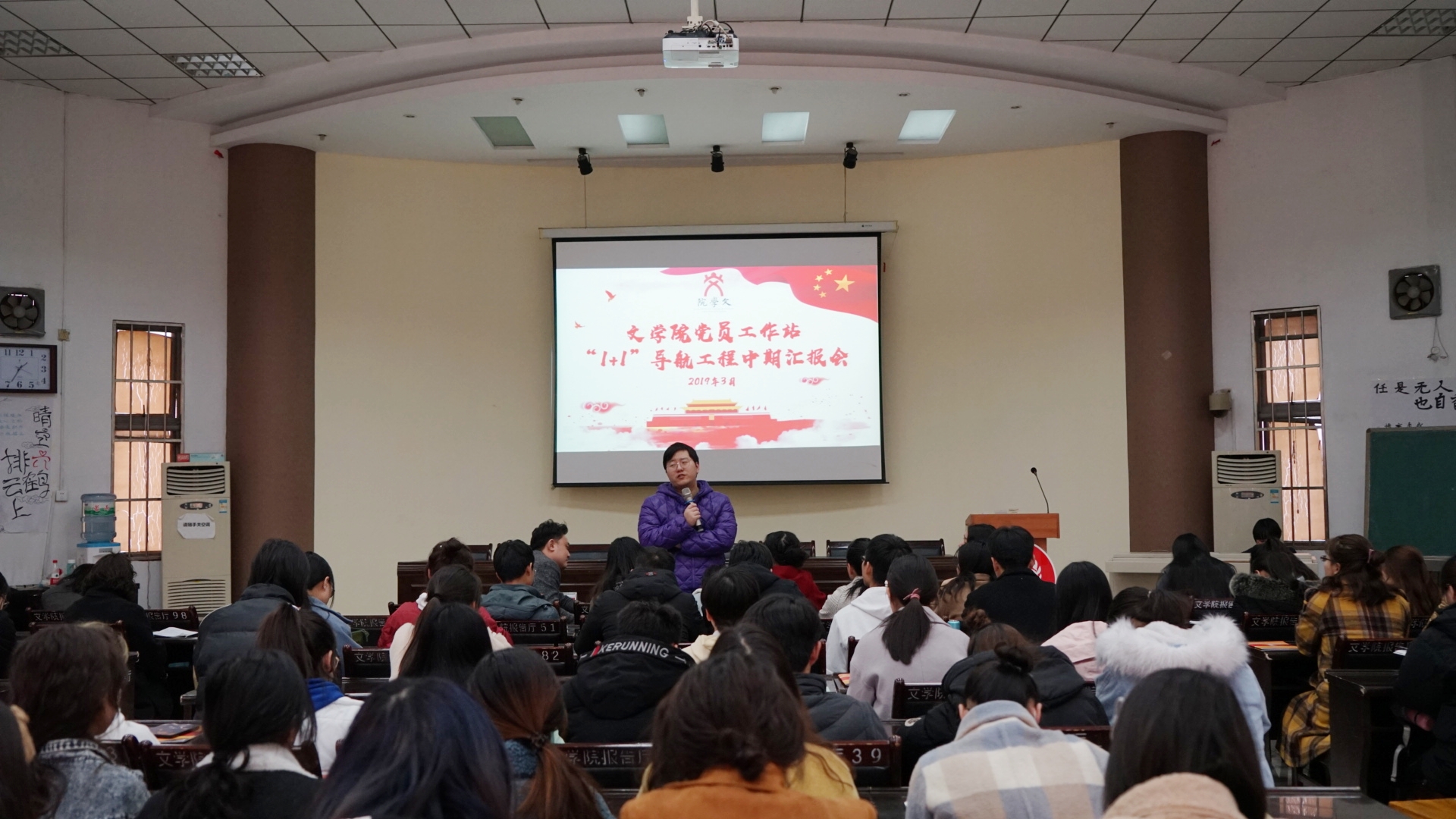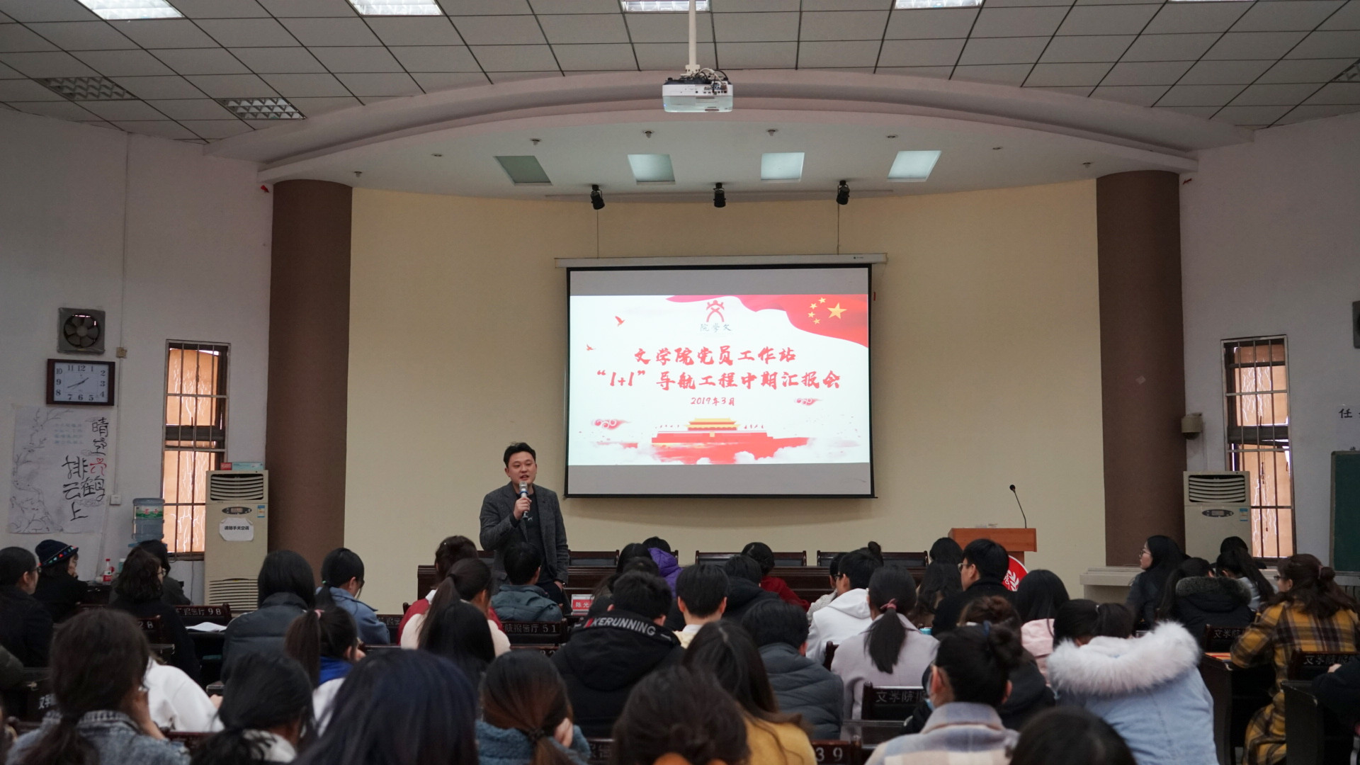 37日中午,文学院在学院报告厅举行学生党员联系新生宿舍1+1导航工程中期汇报会。文学院团委负责老师荆恒磊、2018级辅导员陈光裕党员工作站全体成员及1+1导航工程导航员参加了此次活动。