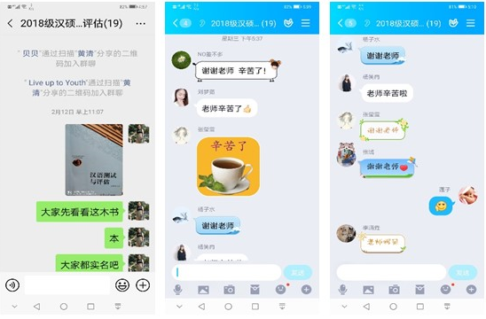 周三下午的课由于学生人数较多,所以建立了QQ群进行电话直播教学。语言测试与评估在我国属于新兴课程,是一门专业性、理论性和实践性都很强的课程,参考资料有限,上课前我先将教学参考书发至微信群中,让同学们对这门课有个大致了解。这次课主要以我讲授为主,主要结合教学和研究实践介绍这门课的性质,包括学科内涵、研究的内容和意义、与语言教学、心理测量学以及统计学等学科的关系,从学生反馈情况看,教学效果非常好。