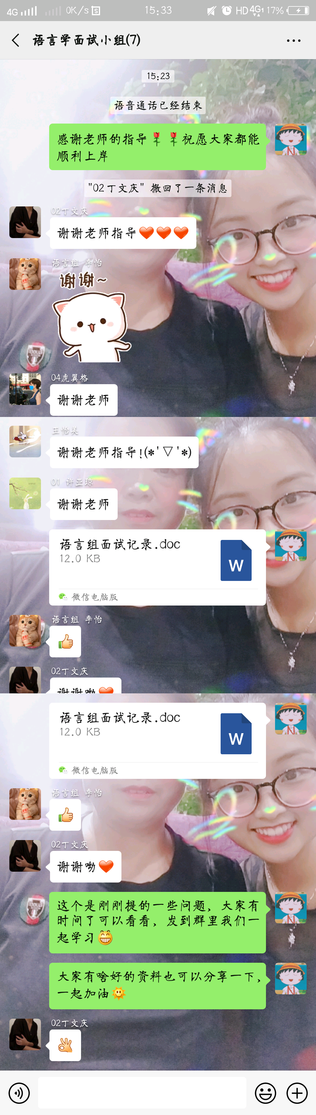 所有参与学生都认真听取了老师的意见,汉文一班的陈博文和邱雪慧同学都表示从这次活动中不仅收获到了专业知识,也与老师和志同道合的同学拉近了距离,老师的亲切指导给了他们很大鼓舞。活动结束后,群内记录员将老师的评价总结形成文档,汇总后将经验总结发至大群和2016级各班班级群,让更多面临考研复试的同学借鉴与学习。