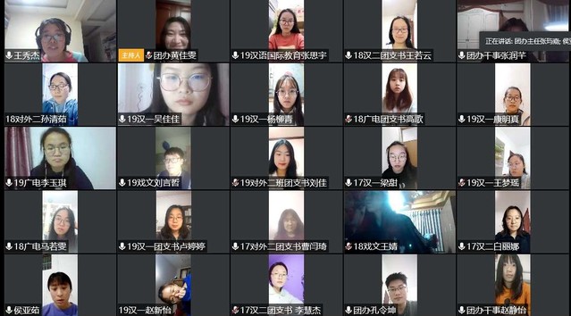 长莺飞四月天,正是读书好时节。在第25个“世界读书日”到来之际,4月22日晚,文学院团委依托“腾讯会议”网络平台,举办了“战疫·阅读的力量”线上读书总结交流会。交流会由文学院团委书记王秀杰主持,各年级团支部团支书以及“全力战‘疫’,用读书为自己增添勇气”读书分享活动第一阶段优秀分享人共50余人参与了读书交流会。