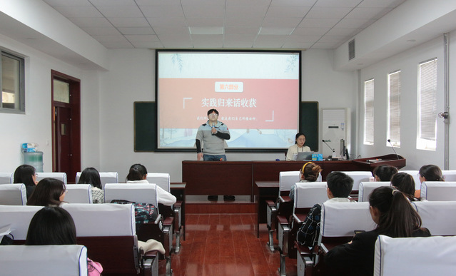 刘改月爱心支教团指导老师荆恒磊回顾了近年来带领学院刘改月爱心支教团开展社会实践的经历,并对各位学生提出希望。作为新时代的青年,不仅要学好专业知识,更要有自觉服务社会的责任和意识,正如疫情期间无数志愿者挺身而出,师大学子也要在实践活动中磨练自我,让青春在党和人民需要的地方发光发热。