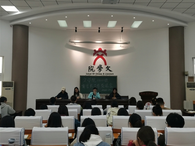 为促进新生寝室文化建设,10月21日中午,文学院在报告厅举办2020级宿舍长工作交流会,2020级辅导员老师及全体宿舍长到场参加。