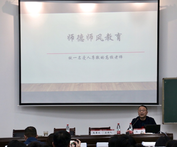 10月20日下午,文学院在学院一楼报告厅召开师德师风教育大会。院党委书记段勃讲话,院长赵黎波主持会议,学院全体教师参加会议。