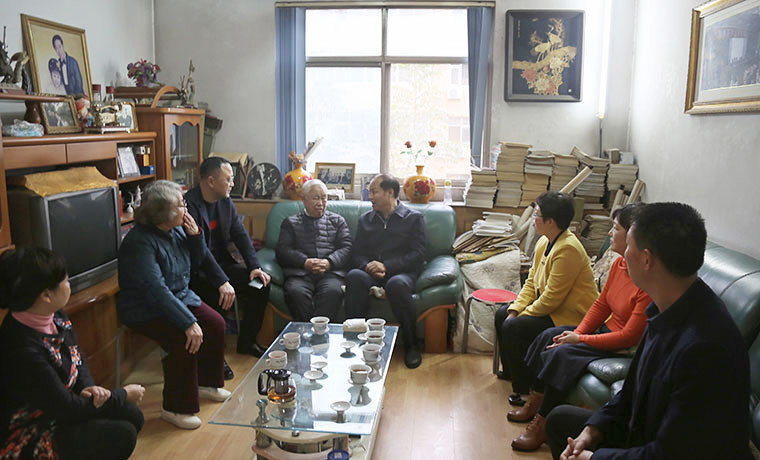 在曾祥芹老师家,梅宪宾询问了曾老师的身体情况,他对曾老师同病魔作斗争的精神感动。梅宪宾感谢老一辈教师为文学院和学校事业所作的卓越贡献。他强调,退休教授们的卓绝智慧、丰硕成果以及学习经验均是学院建设与发展史上的宝贵财富,要传承和发扬退休老教授们“退而不休”的精神