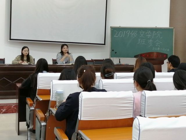 为加强班委队伍建设,提高班级学生干部的学习与工作能力,更好地服务广大同学,促进班风、学生建设,文学院2019级于10月23日在文学院报告厅召开工作交流会,专兼职辅导员及2019级所有班级学生干部参与此次交流会。