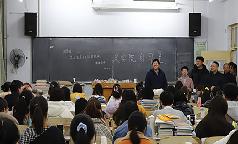 11月24日晚,文学院党委书记段勃、院长赵黎波、院党委副书记张颜勇及2017级专兼职辅导员走进文渊楼、田家炳楼自习室慰问考研学子,并发放考研祝福大礼包。