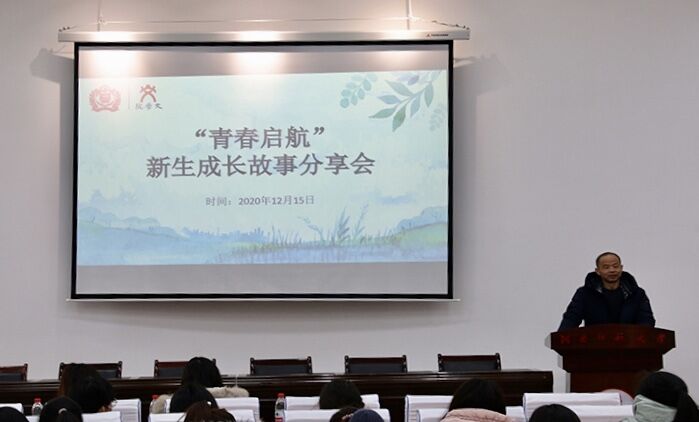 12月15日中午,文学院在崇文楼一楼报告厅举办2020级“青春启航”新生成长故事分享会。学院党委副书记张颜勇、2020级专兼职辅导员及百余名学生参加本次分享会。