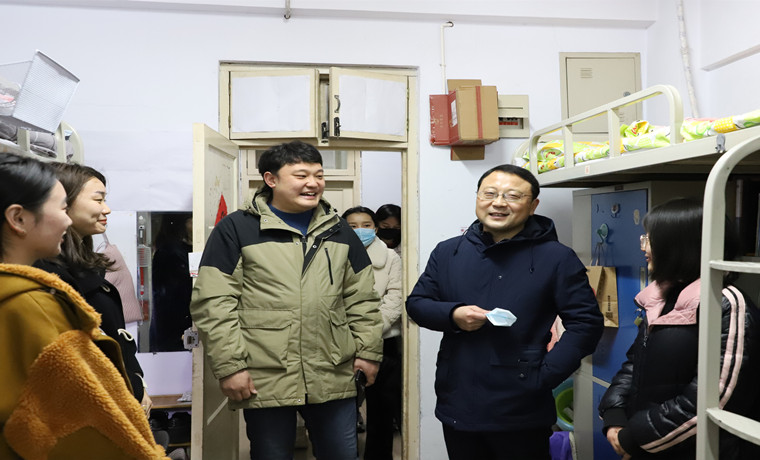 赵黎波与学生交流假期居家学习、生活情况,了解学生宿舍卫生、供暖情况,并细心叮嘱学生及时关注天气变化,预防感冒。对于即将到来的期末考试,她提出调整学习状态、遵守考试纪律、树立良好心态等建议。在新生宿舍,张颜勇重点强调了学校疫情防控工作的规定、专注期末考试和注意人身与财产安全等相关问题,并鼓励学生在大学阶段的第一次大考中取得优异成绩。