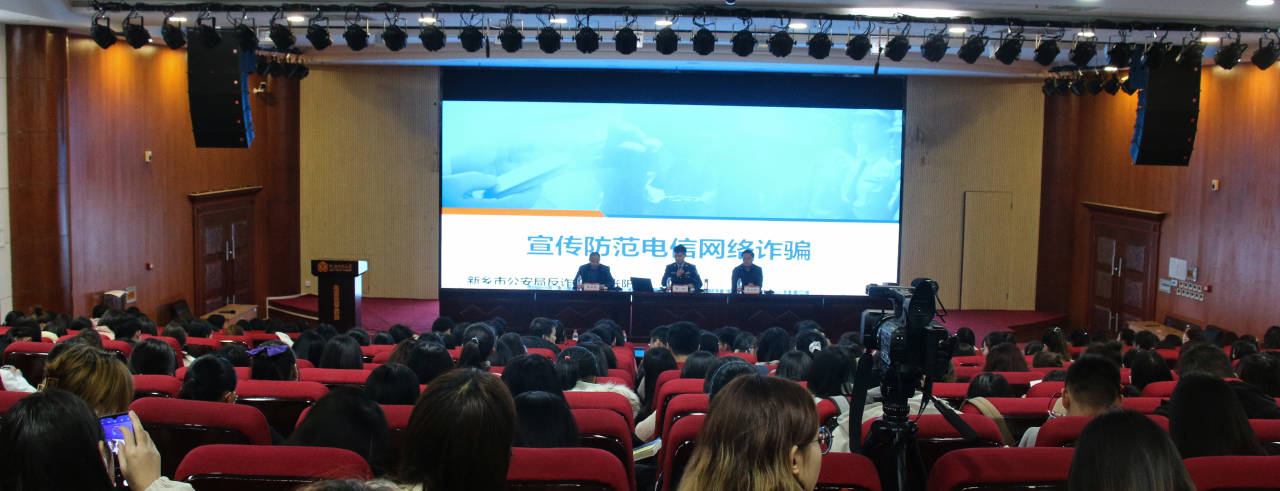 3月10日晚,文学院在思想政治理论课实践教学平台举办防范电信网络诈骗专题讲座。讲座由新乡市公安局电信网络犯罪侦查支队张阳警官主讲。校党委保卫部部长、保卫处处长宋卫平出席讲座并讲话,学院相关负责人、各年级专兼职辅导员及学生代表共300余人参加讲座。讲座由学院党委副书记张颜勇主持。