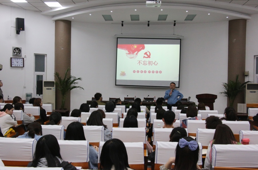 段勃从中国共产党人的初心、毛泽东同志的初心、习近平同志的初心切入,讲述了中国共产党百年来艰苦的奋斗岁月,阐述共产党人的初心同党的初心内涵具有高度一致性,即为全国人民谋幸福,为中华民族谋复兴。从十月革命一声炮响带来社会主义至我国党的第十九次代表大会的召开进行讲述,使大家对党的发展史有更清晰的认识,最后他勉励同学们要积极学习党的基本知识、基本理论、基本思想,继承党的优良传统,为实现初心端正思想而拼搏努力,肩负起青年一代的使命和担当。