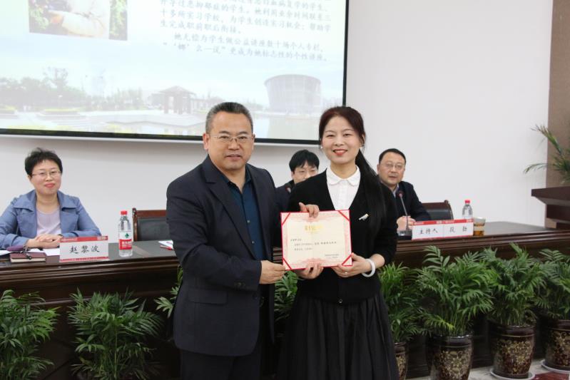 副校长郭海明、教务处处长聂国兴充分肯定我院教学工作现有成绩,同时为获得教学突出贡献奖、师德师风标兵、优秀教学工作者的老师颁发证书。刘志芳代表获奖老师发言,并详细分享教学经验。