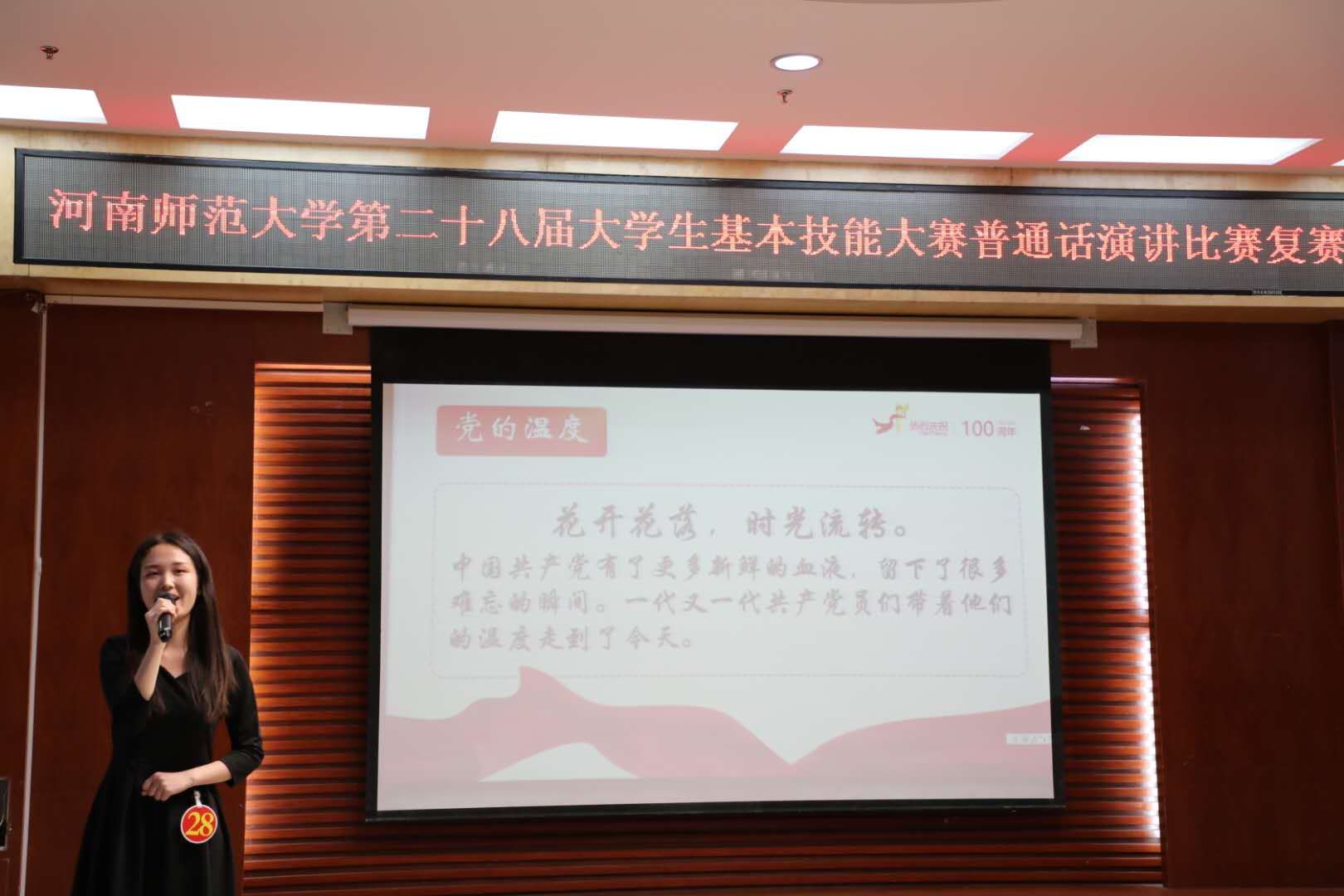 本次比赛由学院教师和往届获奖选手担任评委,经过前期各学院初赛的激烈角逐,四十八位优秀选手成功晋级复赛。比赛现场,参赛选手围绕“百年党史峥嵘路·砥砺前行家国情”这一主题展开精彩演讲,用慷慨激昂的言语叙述党的光辉奋斗历程,用生动真挚的话语表达对党的崇高敬意。2020级汉语言文学专业陈小彤以《忆往昔峥嵘岁月,立今朝向党之志》为题,结合自身入伍经历,借助主题视频展现面对国家的号召和历史的重任,不同时代的青年如何用奋斗烛照复兴之路,用热血成就时代担当,其具有感染力的表达赢得阵阵掌声。2020级戏剧影视文学专业邓怡结合党的百年征程,呈现世纪峥嵘岁月,她以新冠肺炎疫情战役中党员的英雄事迹,号召新时代青年创就新世纪辉煌。