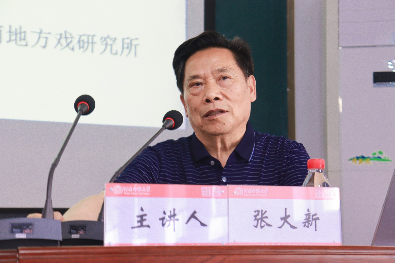 张大新以北宋王朝定都开封的原因为切入点,形象地阐释了中国古代戏曲的产生与文化意义,他从地域环境与文化孕育两个角度追溯了中原文化与华夏戏剧的孕育问题,强调戏剧真正形成是在宋金时期,宋杂剧是一切戏曲的母体。他对北宋文化开放政策与通俗文艺的繁盛的讲解注重文史互证,依次结合文官政治、科举制度、商业经济、地理优势、城市格局等因素展开分析,为师生阐释了中国早期的公众娱乐场所——瓦舍勾栏产生的意义。随后,张大新就“《目连救母》杂剧搬演的市井文化背景”“《目连救母》挣脱宗教羁绊,实现商业性经营的革命性转化的意义”两个核心问题开展深刻细致的讲解,并就豫剧的传承、普及与现场师生进行亲切交流。