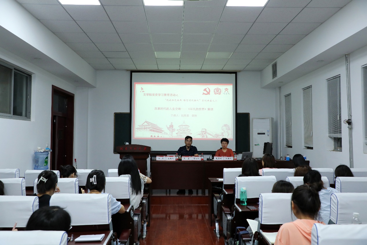6月19日晚,文学院院长赵黎波教授在崇文楼506室为学院师生作题为“改革时代的人生交响——《平凡的世界》解读”的讲座。该讲座为“悦读红色经典 培育时代新人”系列讲座的第三场,是文学院党史学习教育的重要组成部分。本次讲座由文学院教师张翼教授主持,文学院文学党支部书记周惠担任评议人,近百名学生积极参与学习。