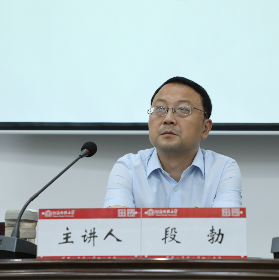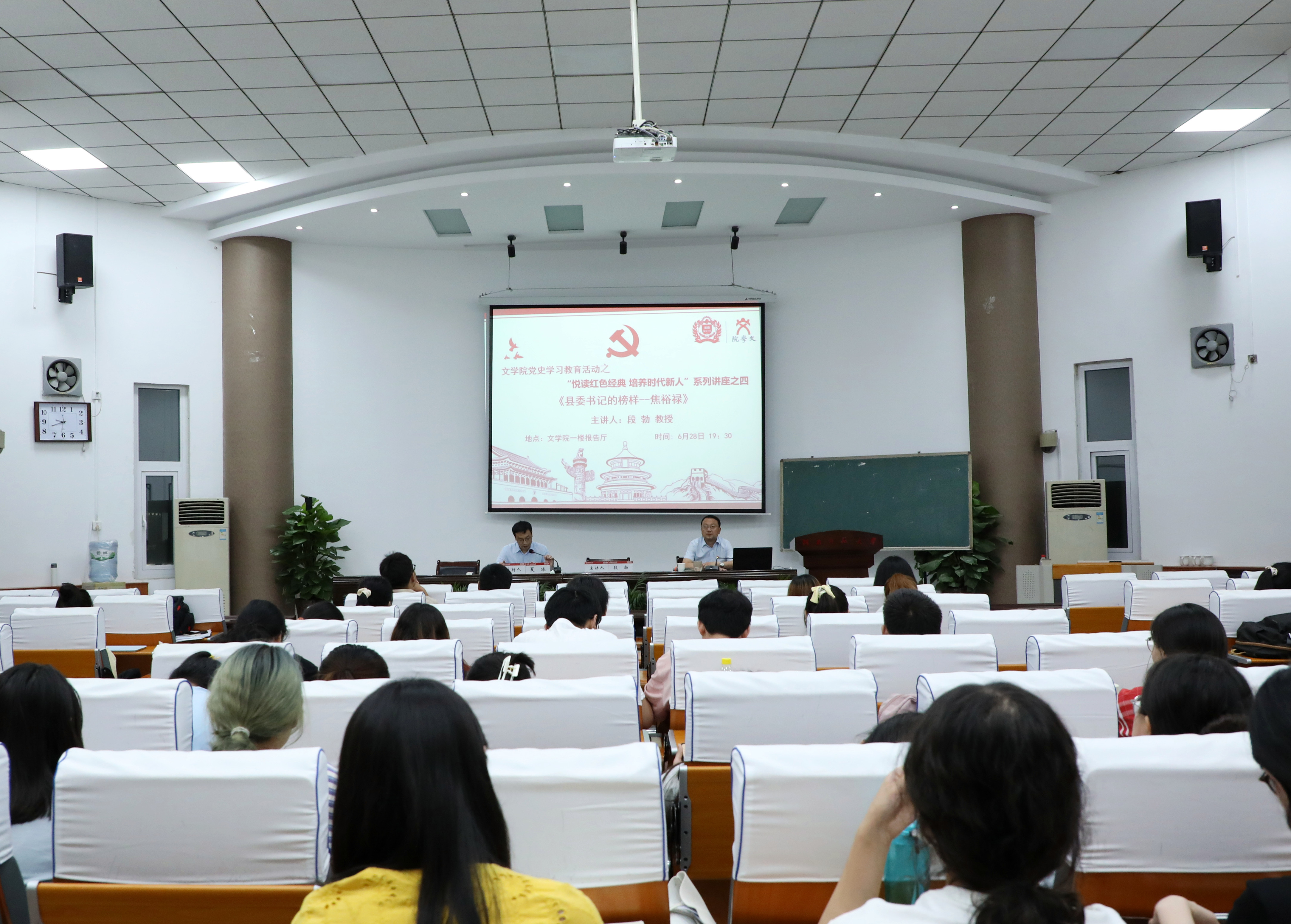 6月28日晚上,文学院“悦读红色经典 培育时代新人”系列讲座的第四场在学院一楼报告厅举行。学院党委书记段勃教授为师生作题为“《县委书记的榜样—焦裕禄》与人民记者穆青”的讲座。本次讲座由夏冰老师主持,文学院近100名师生聆听了讲座。
