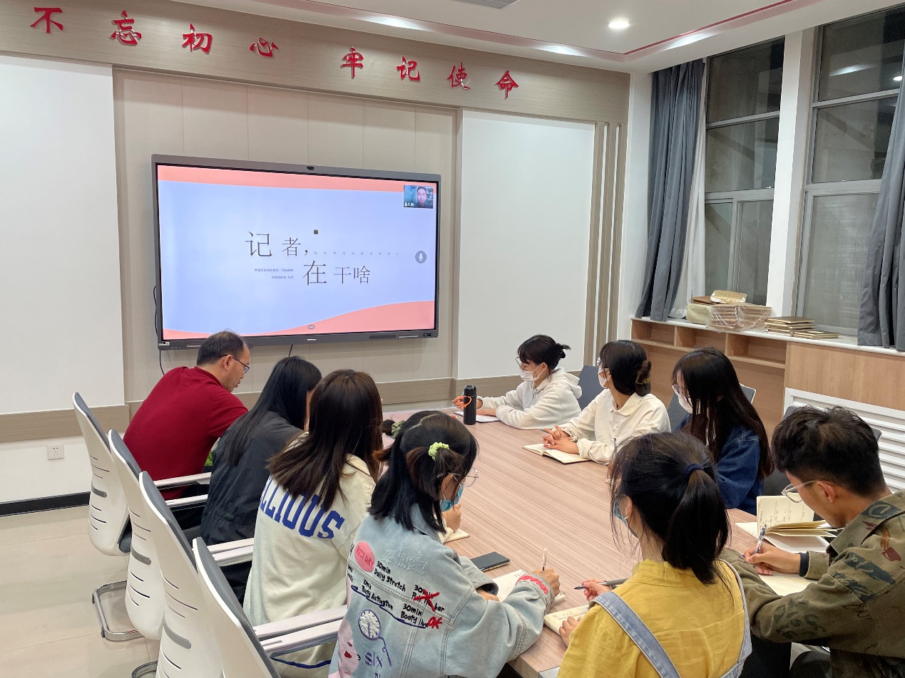 为提高我院学生专业技能,帮助学生了解未来工作方向,4月9日下午,应伟德官网下载苹果版文学院邀请,河南日报报业集团顶端新闻孙贝老师以《从大学生进阶成媒体人:记者在干啥?》为主题,为我院广播电视学专业、戏剧影视文学专业专业实习类学生开设云讲座。本次讲座于文学院二楼党建书屋以及腾讯会议平台线下线上同步召开,由文学院副院长屈会超老师主持,相关师生积极参与,认真聆听。
