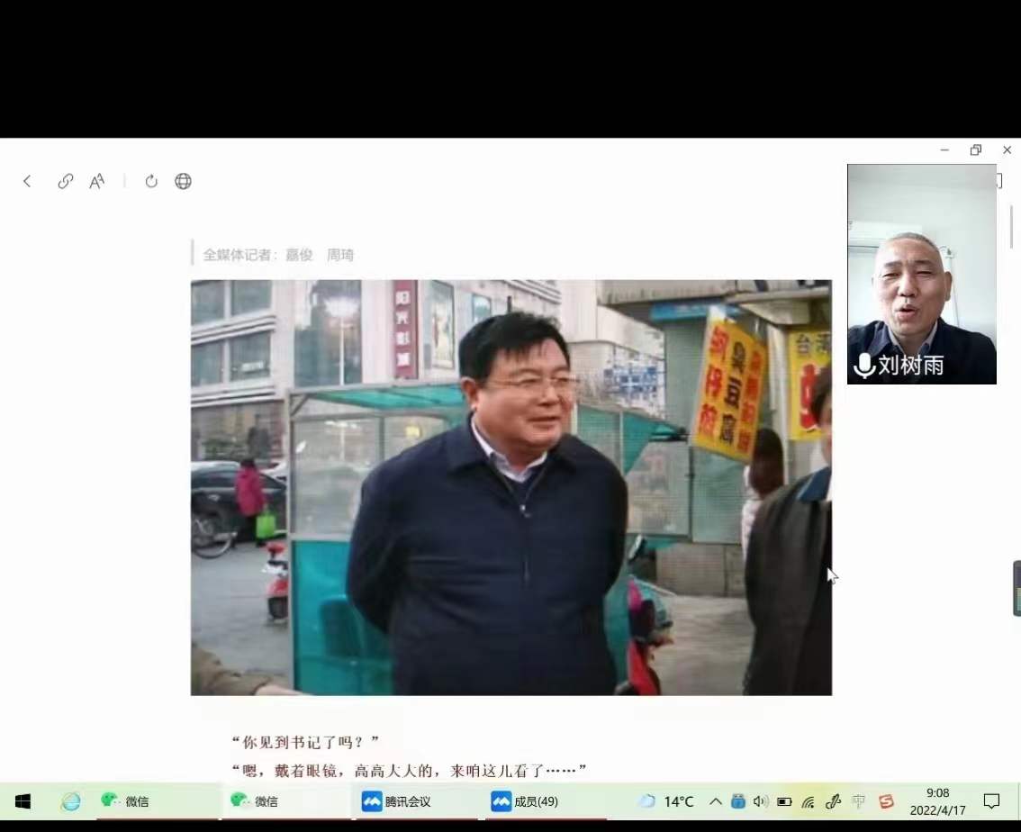 417日上午,新乡广播电视台副台长刘树雨应邀为文学院师生作题为“融媒体时代的记者本领”专业实习专题讲座。本次讲座通过腾讯会议平台线上开展,学院副院长李占伟主持。