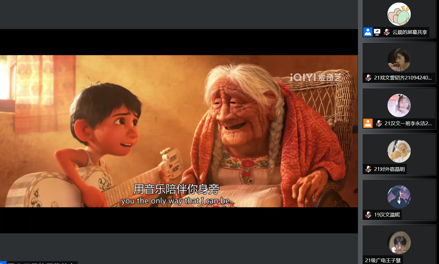 为缓解学生压力,丰富校园文化生活,5月15日下午,文学院开展“共聚心灵影院 阳光健康成长”线上观影活动。我院学子通过腾讯会议积极参与观影。