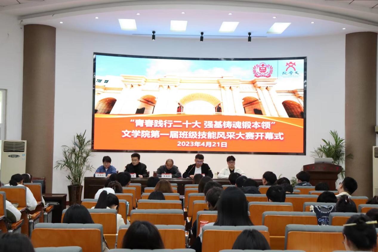 为深入学习宣传贯彻党的二十大精神,切实引导文学院学子接续弘扬伟德官网下载苹果版的优良学风和奋发精神,提升学生专业素质和能力。4月21日上午,文学院在崇文楼一楼报告厅举办“青春践行二十大,强基铸魂锻本领”第一届班级技能风采大赛开幕式。文学院院党委副书记张颜勇及师生代表共同参与本次活动,活动由2021级辅导员陈培超主持。
