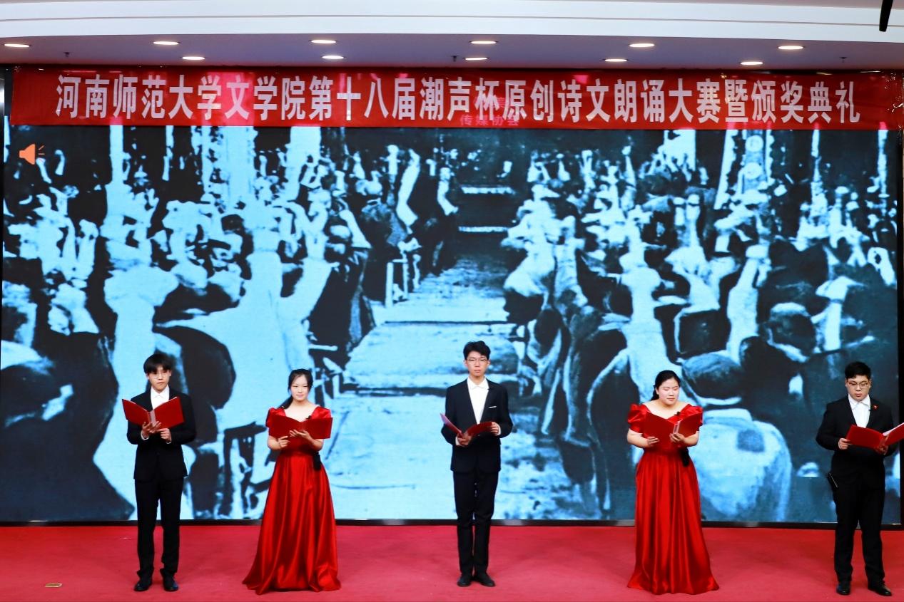 4月22日上午,文学院第十八届潮声杯原创诗文朗诵大赛暨颁奖典礼于马克思主义学院思政平台举行。比赛由伟德官网下载苹果版文学院主办,跋涉文学社承办。新乡市诗词学会党支部书记、副会长唐宋,国家级普通话水平测试员、河南省演讲与口才协会理事、文学院教师高坤,跋涉文学社指导老师李耀伟,文学院团委书记荆恒磊等老师出席本次大赛并担任评委。