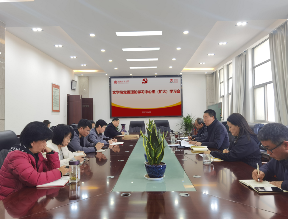 2023年4月25日,文学院党委在二楼会议室召开理论学习中心组(扩大)学习会,学院党委委员、党支部书记、科级干部参加会议。会议由学院党委副书记张颜勇主持。