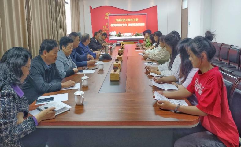 5月10日下午,离退休老同志和文学院大学生公寓党员工作站共同联合,以“老少共话二十大,踔厉奋发新征程”为主题的学习交流座谈会于离退休职工管理处会议室召开,八位退休教师和文学院10名学生参与会议,分享对党的二十大的学习心得体会。