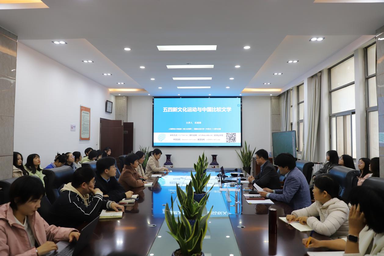 11月9日下午,上海师范大学纪建勋教授应邀做客“卫风讲堂”“百年华诞 学术专场”,在文学院二楼会议室为学院师生作题为“五四新文化运动与中国比较文学”的专题讲座。学院三十余名师生积极参与学习,讲座由学院教师赵世昌主持。