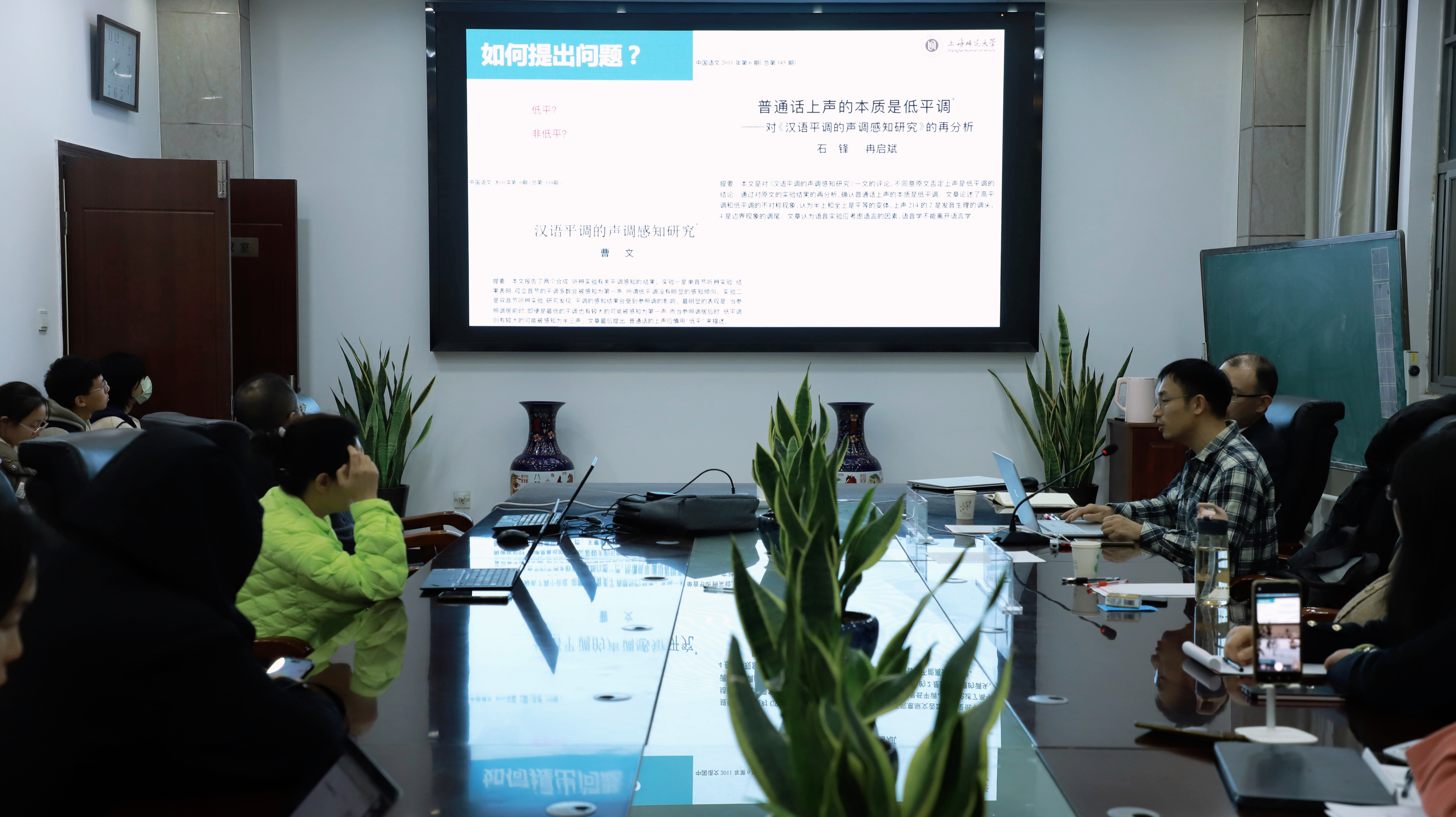 1121日晚上,上海师范大学沈向荣教授应邀做客“卫风讲堂”,在崇文楼二楼会议室为文学院部分师生作题为“现代语音学实验研究技术新进展”的学术讲座。讲座由文学院武波老师主持。
